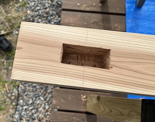 引き続きルータとノミでホゾ穴掘りまくって、おが粉まみれに