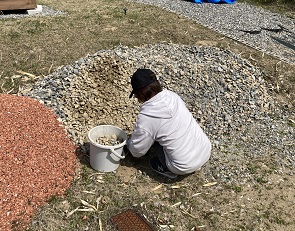 嫁さんの方の貝拾いもかなり進みましたね。砕石と瓦チップが