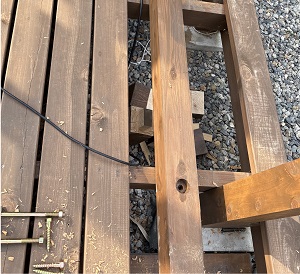 しました。塗り塗りも忘れずに。棟上げ後は、小屋側との接続