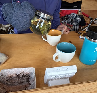 ちょうど中央のデッキ板が外されていたので、掘りごたつ風に