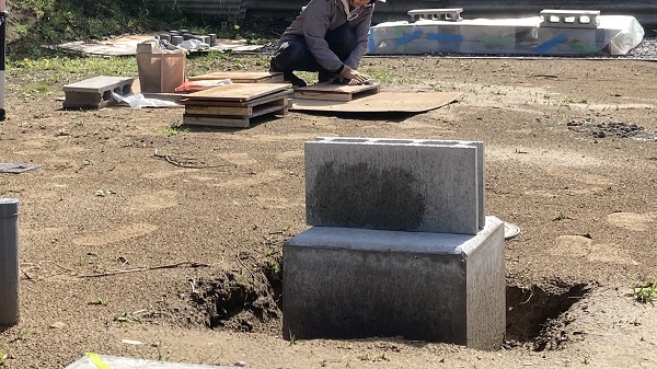 余ったモルタルも有効利用します。牛乳パックも登場です。