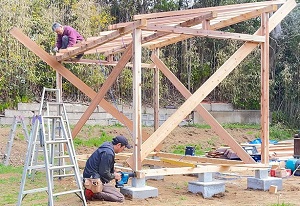 お昼になっても棟梁が一人で頑張っていたので、ちょっとだけお手伝い。
