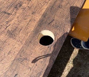続いて、鍵付きノブを取り付けるために、穴を空けます。