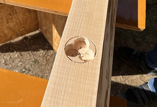 ノミで斫ってビックリ。穴の中心がずれているではありませんか(笑)