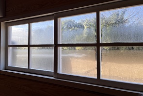 天気が良いので、今日も行きます。小屋の窓もぽかぽか陽気で結露。