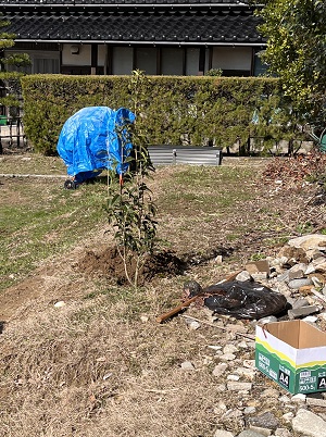 嫁さんは、先週衝動買いした、金木犀植えています。大きさの割に