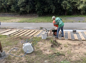 雨水を排出したいのと、駐車場のどこかに水道の蛇口設置