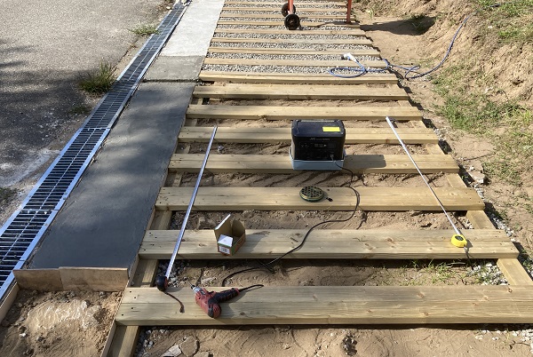 途中、雨水排出用に溝も作りました。そのうち小屋の屋根の