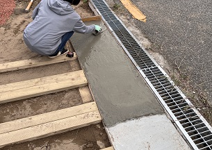投入後は、ブロックで転圧してから、水をかけて洗浄します。