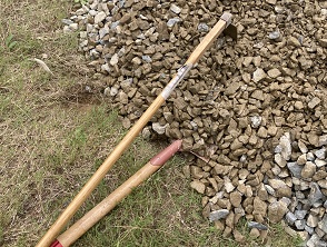 土が入ったので、砕石を敷いていきます。購入した切込砕石を