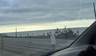 また曇ってきましたね。帰りの里山海道ですが、水平線が