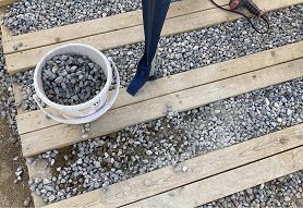 からやり直しです。5号砕石を土がついてない部分だけ戻してか