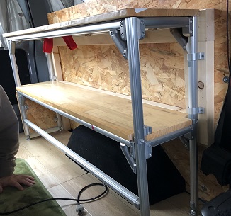 いきなり完成写真です。棚の脚の間にバッテリーを置くんだけ