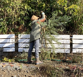 の添え木を新しくしているようです。立派な笹が豊富にあるの