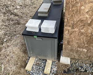 が高くなると側板が浮いて外れるようなので、物置の下に木を