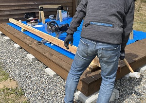 今度は軒桁の加工です。スライド丸鋸で刻んでいくのですが4